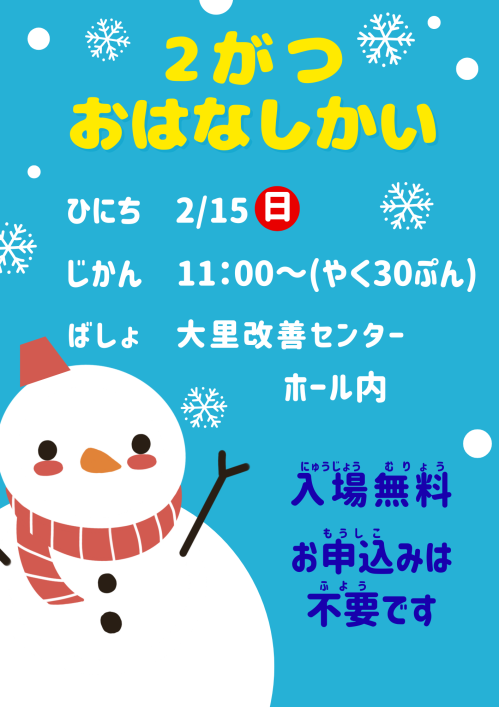 【大里】2/15(日)おはなし会開催